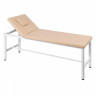 Каркас стола выполнен из стального сплава. Этот материал не подвержен коррозии, не портится от попадания влаги, не деформируется. В качестве наполнителя используется поролон толщиной 100 мм. Он не проминается, хорошо сохраняет свою форму и оказывает должную поддержку. Обивкой служит винил-люкс. Этот материал отличается высоким качеством. Он не протирается и не трескается, не портится от попадания влаги и косметических средств. Кроме того, он приятен на ощупь, не вызывает тактильного дискомфорта или аллергии. В комплекте подголовник для большего удобства клиента.