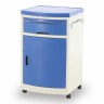 Тумбочка прикроватная на колёсах BLZ 016 с дополнительным выдвижным столиком и скруглённым белым фасадом. Передвижная прикроватная тумбочка на самоориентирующихся двойных роликах, два из которых которых оснащены тормозным устройством. Cнабжена отделением с дверцей и полкой внутри, глубоким выдвижным ящиком и дополнительным выдвижным столиком, убирающимся под топ. Столешница с четырехсторонней выпрессованной отбортовкой. Широкая металлическая ручка сбоку позволяет легко перемещать тумбочку или удобно подвешивать за неё различные аксессуары.